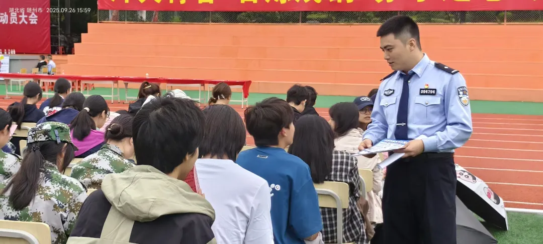 为全面提升随州职业技术学院2025级新生法治意识和自我保护能力,9月26日,曾都区公安分局、市局交管支队、涢水街道与随州职业技术学院联合开展了“法治宣传进校园,警校携手护平安”为主题的新生安全教育专题讲座。